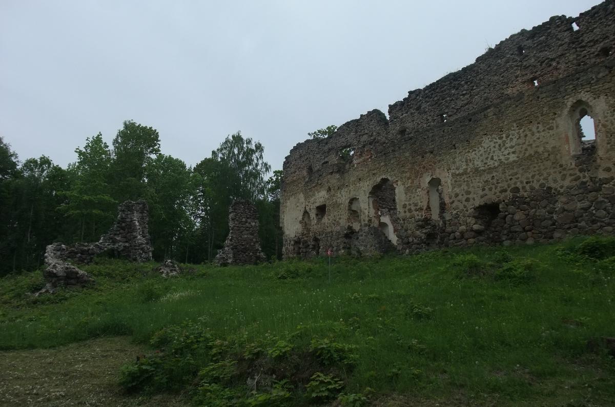 Лишь чудом уцелевшие куски валунных стен да фундаменты старых построек напоминают о былом размере Раунского замка.