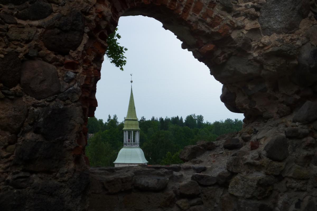 Из замка видна церковь, построенная в 1262 году. Строительство католического храма велось одновременно с возведением замка Рижского архиепископа.