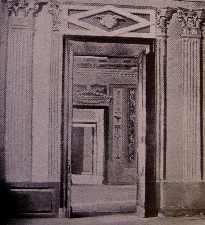 "Самою интересною деталью внутренности дома является обработка стен... Этот род украшений стен медальонами и включенными в квадраты изображениями античного сюжета очень редкий и привлекательный.