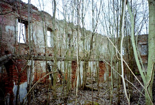 Лет 30-40 назад в уцелевшем флигеле размещалась местная школа, сейчас внутри настоящая непролазная чаща.