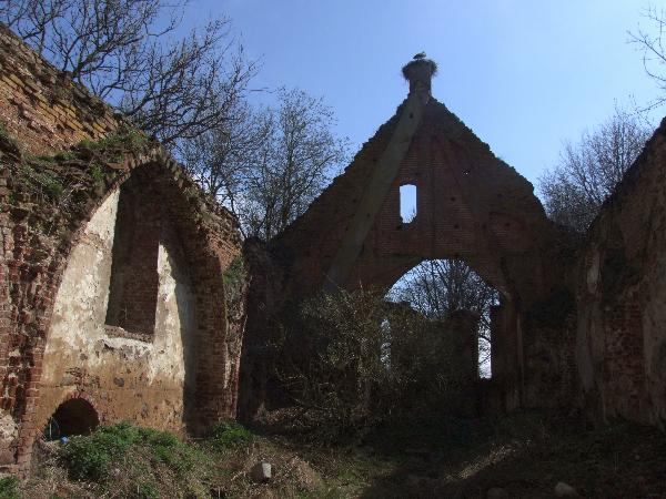 Здесь, как и на одной из башенок замка, гнездо аиста. Огромные гнезда кажется чудом удерживаются на небольших кирпичных основаниях.