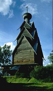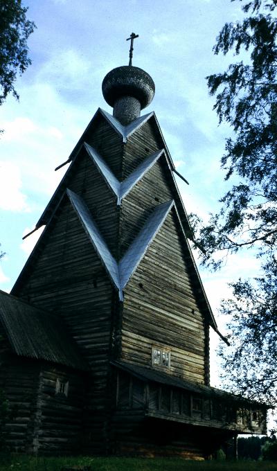 с динамичными линиями древней церкви - но все-таки это тоже был памятник деревянного зодчества, и его по-своему жалко...