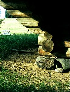В основании церкви - валуны. Толщина бревен нижних венцов