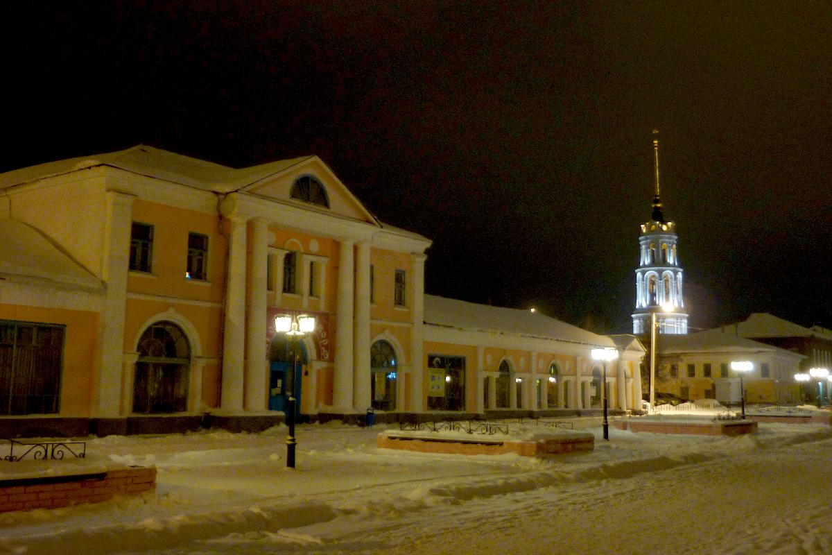 Гостиный двор на улице М.Белова был построен в начале XIX века и состоит из двух корпусов по обе стороны улицы. На фото - северный корпус.