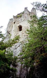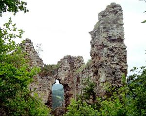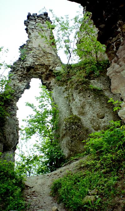 Поднимаясь по поросшей лесом горе, уже издали видишь остатки внушительной средневековой крепости. Замок вырастает прямо из скалы, сливаясь с ней в единое целое.