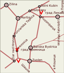 Кремница распоожена на шоссе между Турчанске Теплице и Жиаром над Гроном. Замок находится среди узких улочек центра города чуть левее шоссе(если ехать с севера).