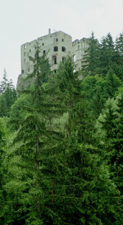Королевский замок Ликава величественноо возвышается на вершине скалы. К нему можно подняться напрямик через лес, а можно обогнуть холм по проселочной дороге.