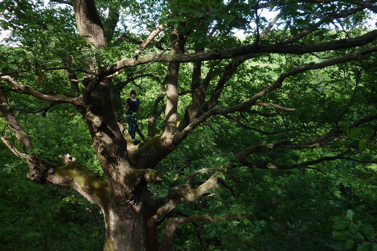 Огромному дуб, растущему не одну сотню лет под "водопадом", хочется задать традиционный вопрос о том, что же он видел в молодости. Если не турок, то уж наверное австрийских солдат, которые должны были разрушить замок, но так и не преуспели вполне. То ли владельцам удалось отстоять замок, то ли... просто базальтовые стены оказались на удивление крепкими?