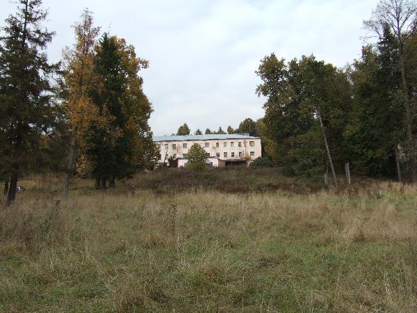 Самый красивый вид на главный дом - от реки. Когла-то здесь был парадный партер и аккуратно обсаженный деревьями спуск к Десне. К счастью, не все заросло, и можно полюбоваться усадьбой издали.