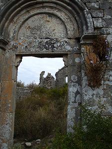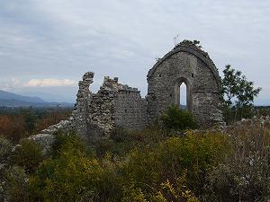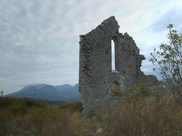 Издалека виден силуэт церкви, вернее того, что от нее осталось. Это францисканский храм, посвященный Божьей матери.