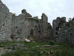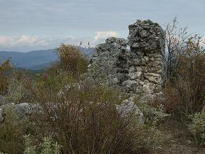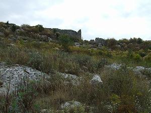 От Шаса начинается тропинка среди камней и довольно колючей растительноти. По сторонам остатки жилых сооружений теперь уже непонятного назначения.
