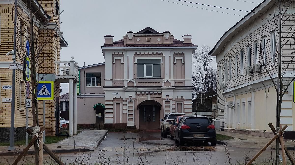 На площади Карла Маркса можно увидеть и старую городскую застройку, вполне симпатичные каменные купеческие дома. На фото в глубине переулка — дом купца С.С.Смирнова (площадь К.Маркса, 13А)