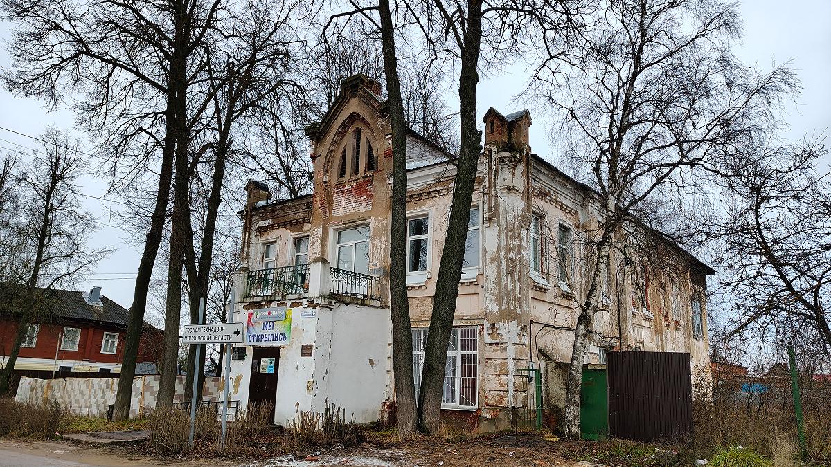 Самый красивый, на наш взгляд, дом ветшает на соседней Калязинской улице (под номером 33). Это особняк купца А.Х.Харитонова, построенный в 1906 году. Вселяет надежду надпись детского семейного клуба «Любознайка»: «Мы открылись».