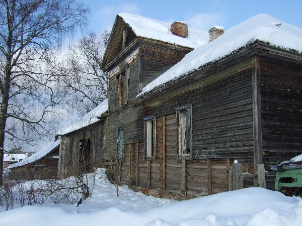 Жилые флигели из бревен обшиты калеванным тесом. Прямоугольные в объеме, они завершены на поперечной оси мезонинами. Западный флигель сохранил резную отделку.