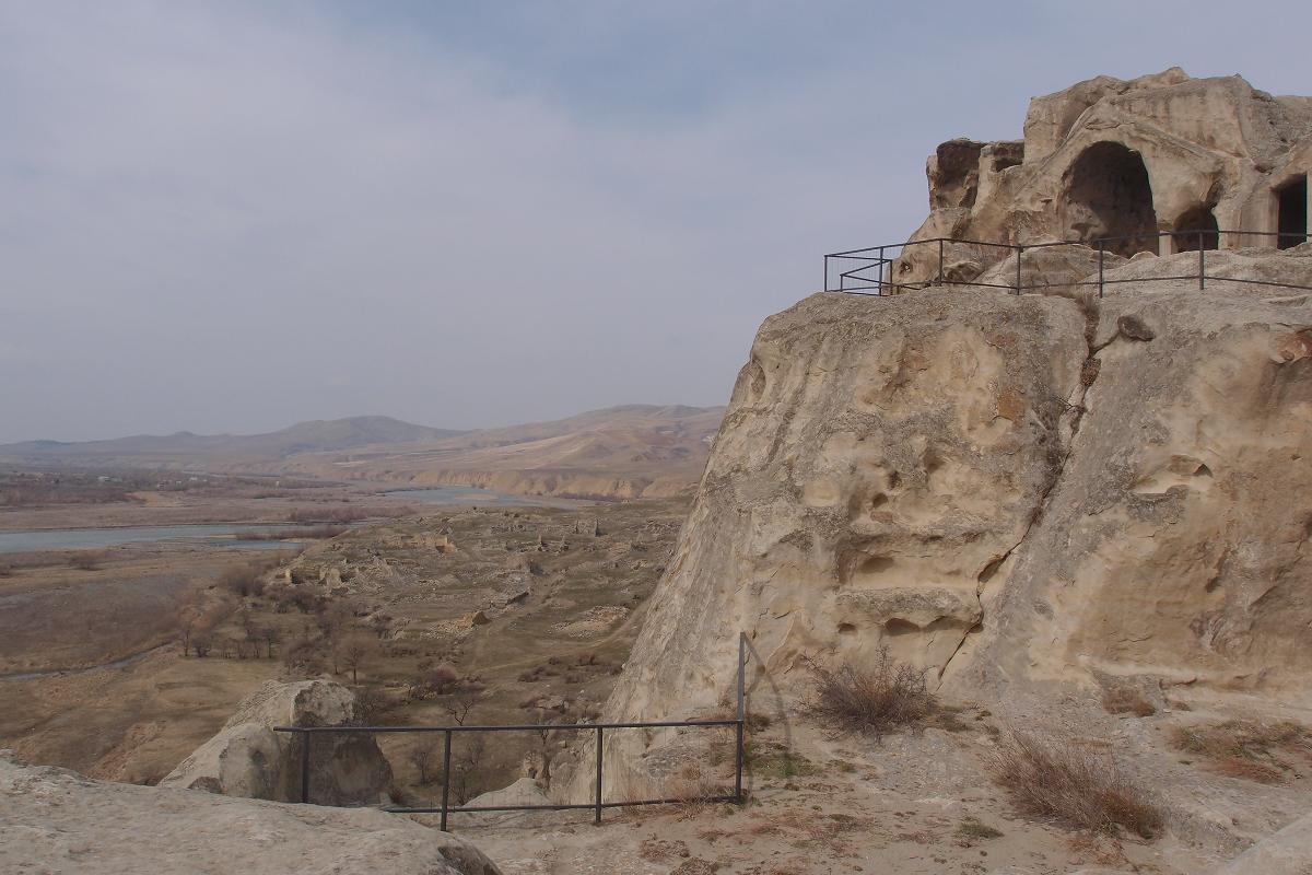 Выйдя не верх поражаешься красоте открывшегося пейзажа. Снизу - долина Куры, впереди - Храм над обрывом.