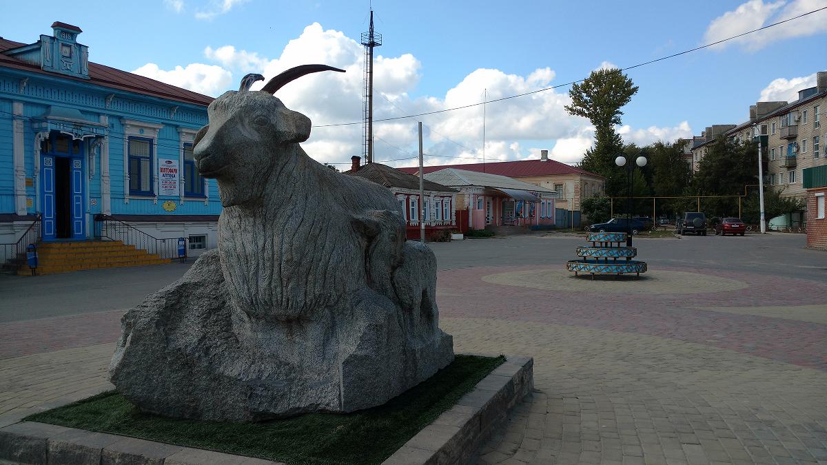 Главная достопримечательность - гранитный памятник Козе-кормилице, установленный в 2000 году. В эконимически сложные времена пересторойки, когда зарплаты стали мизерными, да и их не платили, промысел вязания из козьей шерсти буквально спас жителей города. Говорят, продав пару платков, можно было купить холодильник.