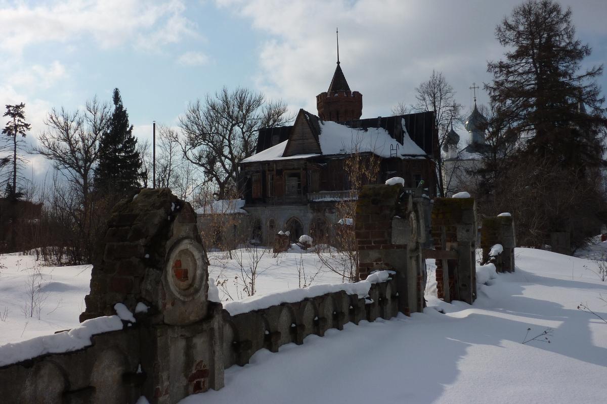 Удивительную по архитектуре дачу выстроил местный фабрикант Сергей Иванович Сеньков. Главный дом включает в себя элементы готики и модерна. При этом дача, имеющая свободную планировку, смотрится довольно гармонично. Первый этаж дома каменный, второй - бревенчатый, обшитый тесом. По южному и восточному фасадам расположены открытые террасы в виде стрельчатых аркад.