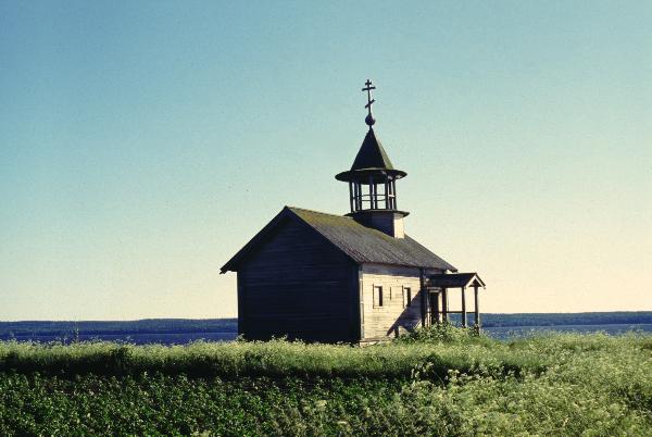 Часовня в Кондобережской - достаточно непритязательная клетская постройка, но расположена очень красиво на высоком берегу озера, среди лугов.