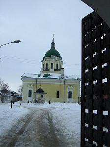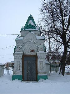 Перед церковью, чуть наискосок, симпатичная надвратная часовенка, которую мы можем видеть и на старой фотографии. Лишь завершение ее лишилось главки.