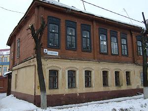 Домов, подобных дому Анны Сергеевны Голубкиной, довольно много в Зарайске - кирпичный низ, деревянный верх, наличники с деревянной резьбой.