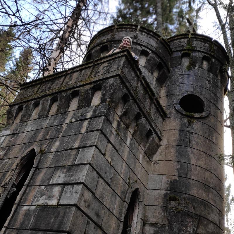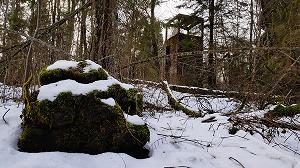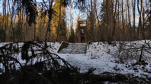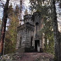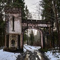 Впечатление от заброшенных руин усадьбы Заветное скорее мистическое. Хрупкое, невесомое и как будто нематериальное. Усадьба-призрак. Кажется, одно лишь дуновение ветра - и призрак исчезнет среди заросшего густого леса. Шум новой автомобильной трассы, проложенной в полукилометре отсюда, лишь усиливает ощущение нереальности происходящего, словно шум поездов в "Сталкере" Тарковского. То, что осталось от усадьбы (а осталось совсем немного) - как будто полупрозрачные штрихи замысла её создателя, контуры, почти освободившиеся от всякой вещественности. Это ощущение лёгкости отчасти обусловлено выбором строительного материала - сохранившиесся постройки выполнены из тонкостенного железобетона, серый цвет которого, особенно когда окружающие деревья стоят без листвы, сливается с ветвями деревьев и как будто неожиданно распознаются глазом на фоне лесной чащи. Формы въездных ворот и часовни настолько пластичны, что невольно вспоминается знаменитый мастер той же эпохи - Гауди, раскрывший миру художественные возможности нового для того времени материала. Кончно, мы далеки от мысли всерьёз сравнивать в основном подражательную "готику" Заветного с мощным полётом фантазии великого каталонца. Но хочется отметить другое: насколько постройки Гауди подчеркнуто вещественны, объёмны и массивны, настолько в Заветном всё легко, прозрачно, и - призрачно... Усадьбу "Заветное" построил Михаил Антонович Токарский - русский инженер, чья профессиональная деятельность была связана в основном с металлургичсекой и лесной промышленностью северо-запада России. С именем Токарского также связана прокладка первой телефонной сети в Петрозаводске, проект гидроэнергетического комплекса близ Кондопоги, проект электрификации Николаевской железной дороги. Все перечисленное - лишь небольшая часть того, что было построено, спроекировано и изобретено этим чрезвычайно разносторонним и деятельным человеком. Родился он в 1868 году в дворянской семье, владевшей усадьбой в Боровичском уезде Новгородской губернии. Дальше в генеалогическое древо мы не углублялись, однако стоит заметить, что Токарский - весьма распространённая польская фамилия, поэтому, вероятно, род Токарских имел польские корни. Небольшой штрих к портрету Михаила Антоновича: сыну Николаю он дал хорошее образование, но при этом в семнадцатилетнем возрасте отправил в путешествие по Ближнему Востоку «для обучения жизни». Полтора месяца Н.М. Токарский, будущий архитектор и историк древнеармянской архитектуры, служил юнгой на корабле. Усадьбу "Заветное" Михаил Токарский покупает В 1914 году и за короткий срок радикально перестраивает ее, превратив в "маленький Версаль" - так отзывались о ней современники. Усадьба была построена и оборудована по последнему слову техники. Сейчас довольно трудно представить себе масштаб усадьбы: два двухэтажных дома, два флигеля, водохранилище на ручье Талец, оранжерея и даже театр. При усадьбе была фабрика, изначально - по химической переработке древисины и смолы, просуществовавшая до 1936 года (хотя и неоднократно менявшая свой деревообрабатывающий профиль). После Февральской революции усадьбу и фабрику Токарский передал рабочим, которые происходили в основном из крестьян соседней деревни Борок. Бывшего владельца уговаривали вернуться и стать директором фабрики, н