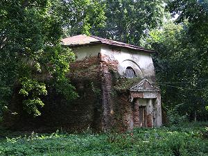 Слева от парадного фасада, прямо у дороги - церковь. Она возведена в 1796 году в стиле классицизма. С южной стороны храма находятся надгробия княжны Ольги Александровны, Марии Александровны и князя Александра Федоровича Прозоровских-Голицыных.